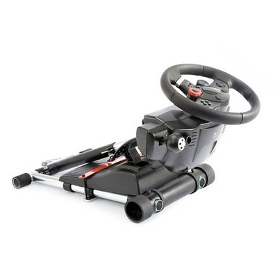 Esta base fabricada em metal muito resistente, manterá o volante na posição que prefiramos, mostrando-se em todo momento fixo e resistente. Tanto o volante como os pedais se encaixarão no Wheel Stand Pró em poucos segundos, podendo jogar sem que se deslize o mais mínimo o volante ou o suporte.